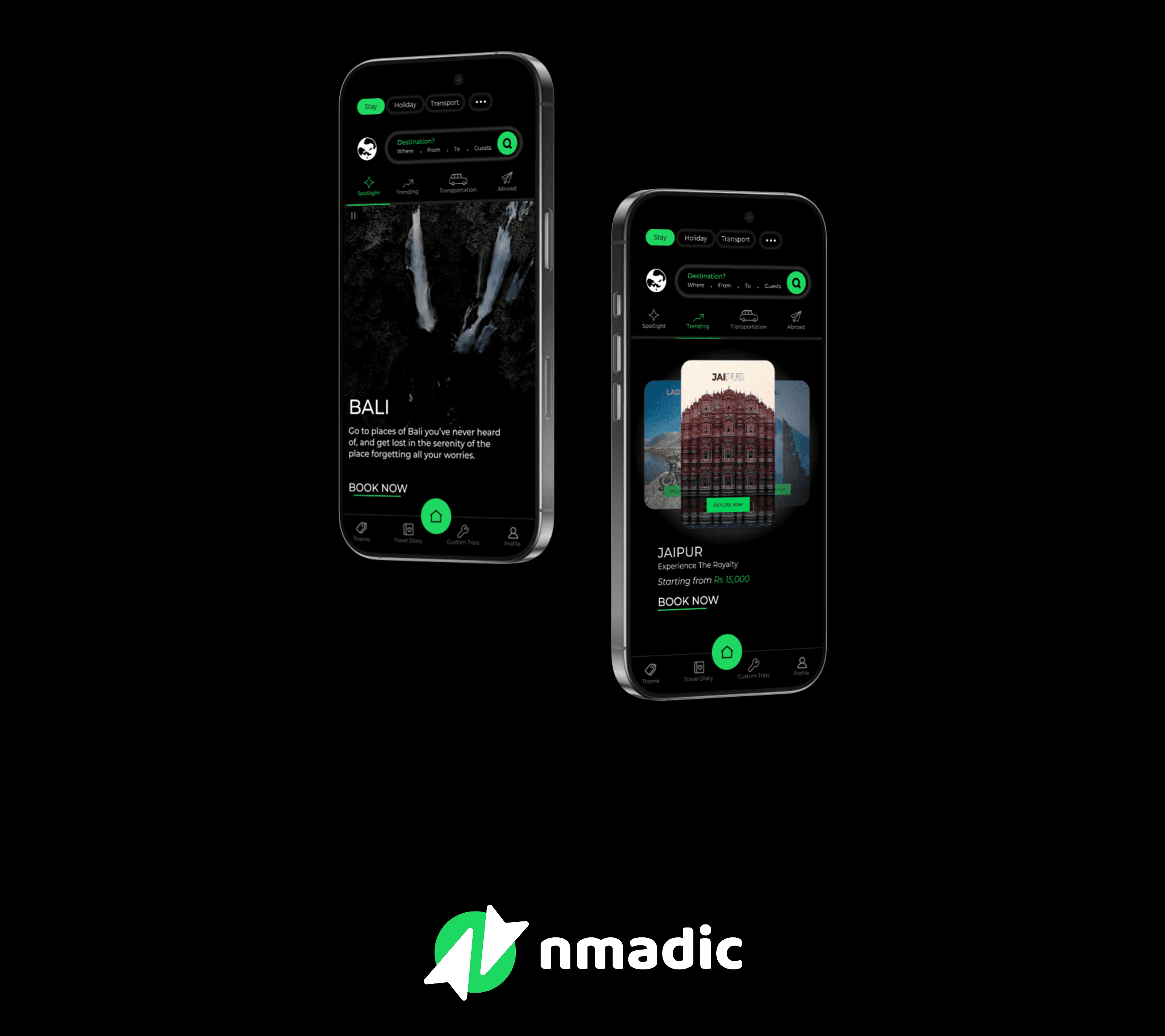 Create a complete brand identity for Nmadic, a tours and travel company—starting from the logo and extending into a full-fledged website that reflects adventure, trust, and exploration.